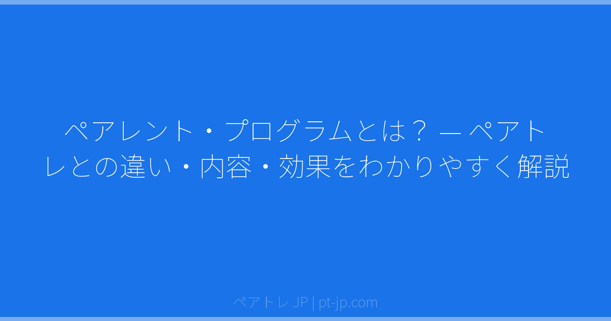令和元年度(2019年)の障害者総合福祉推進事業として、一般社団法人日本発達障害ネットワーク(JDDnet)が作成しました。ペアトレの定義、プログラムの基本的な構成、実施上の留意点などが網羅されています。