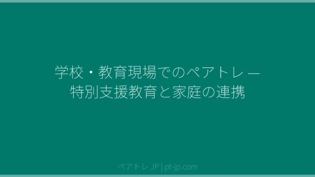 受講ガイド 学校・教育現場でのペアトレ — 特別支援教育と家庭の連携 ペアレント・トレーニングは、医療機関や福祉施設で行われるものと思われがちですが、近年は学校や教育現場でも実施されるケースが増えています。特別支援学校や放課後等デイサービスを中心に、家庭と学校が連携した取り組みが広がりつつあります。本記事では... 2026.03.02 受講ガイド