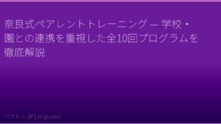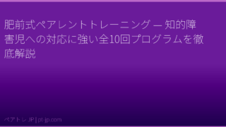 ASDの診断を受けた子ども、または ASDの特性が目立つ子どもの保護者であれば、鳥取大学式が最も適している可能性があります。ADHDが中心であれば精研式、知的障害を伴う場合は肥前式が候補になるでしょう。詳しい比較はペアトレ完全ガイドを参照してください。