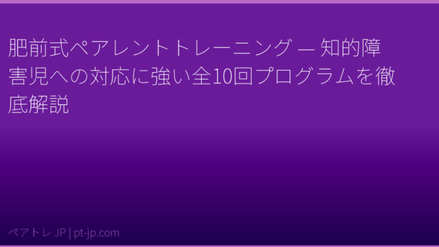 この記事はペアトレ完全ガイドの方式別詳細記事です。コアエレメント(共通の6要素)を理解したうえで読むと、各方式の特徴がより明確になります。肥前式ペアレントトレーニングは、国立肥前療養所(現・国立病院機構 肥前精神医療センター)で開発された方...